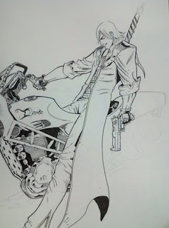 Since I'm working now I don't get as much time to work on drawings but I managed to work on this one here and there. It started off as a sketch and I wasn't planning on inking but I like the way it turned out. Problem is I did it on an 8 1/2 by 11 sheet of paper the long way so I don't have room for the wheels. Ugh. This is a picture from my phone so once I finish it I'll scan it in, clean it up and post a cleaner version....without the wheels...ugh. See, this is why people plan ahead... most people.