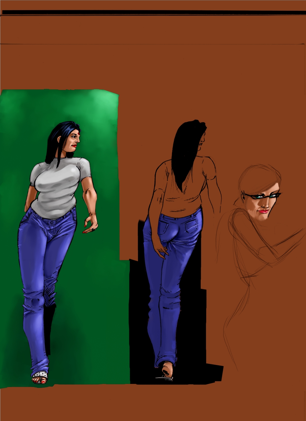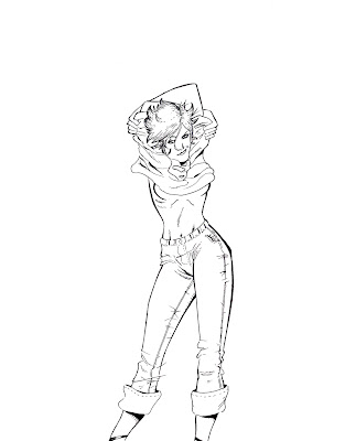 I fixed a drawing I had done sometime ago. This is much better than the original (which is somewhere in the basement of this blog). I fixed just about everything but the more noticeable changes are the size of her feet (gigantic before), fixed the face... in short I practically re-did it. I'm much happier with this version than with the previous one. As usual I wasn't happy with just one out fit so I did a couple.