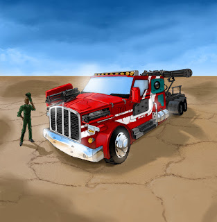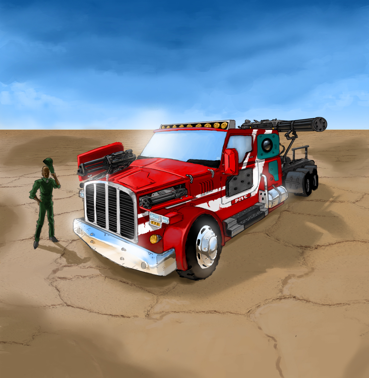 Non-military so no camo color scheme. Started as a pen and ink drawing of a basic truck, scanned and altered in photoshop.